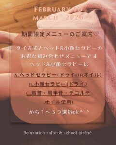 2月~3月の季節の変わり目におすすめのヘッド&小顔セラピーをタイ古式にセット(^O^)