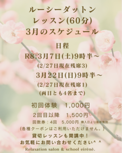 3月のルーシーダットン(タイ式ヨガ)・定期レッスンのご案内です(^^♪