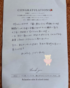 ご自身のサロンのメニューに新しく加えていきたいと思われたのが受講に至ったきっかけです(^^)